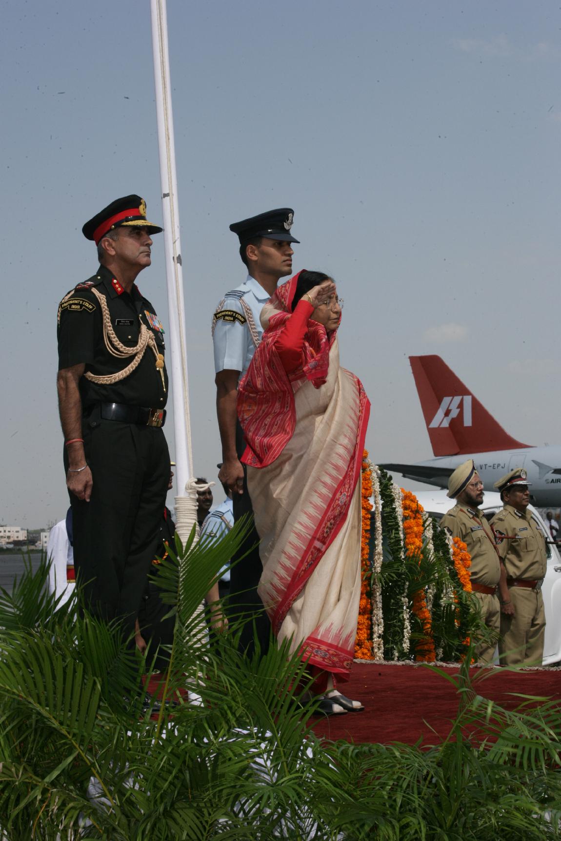 The President of India, Smt Pratibha Devisingh Patil before departure from Hyderabad Airport in Andhra Pradesh on Oct 14, 2007