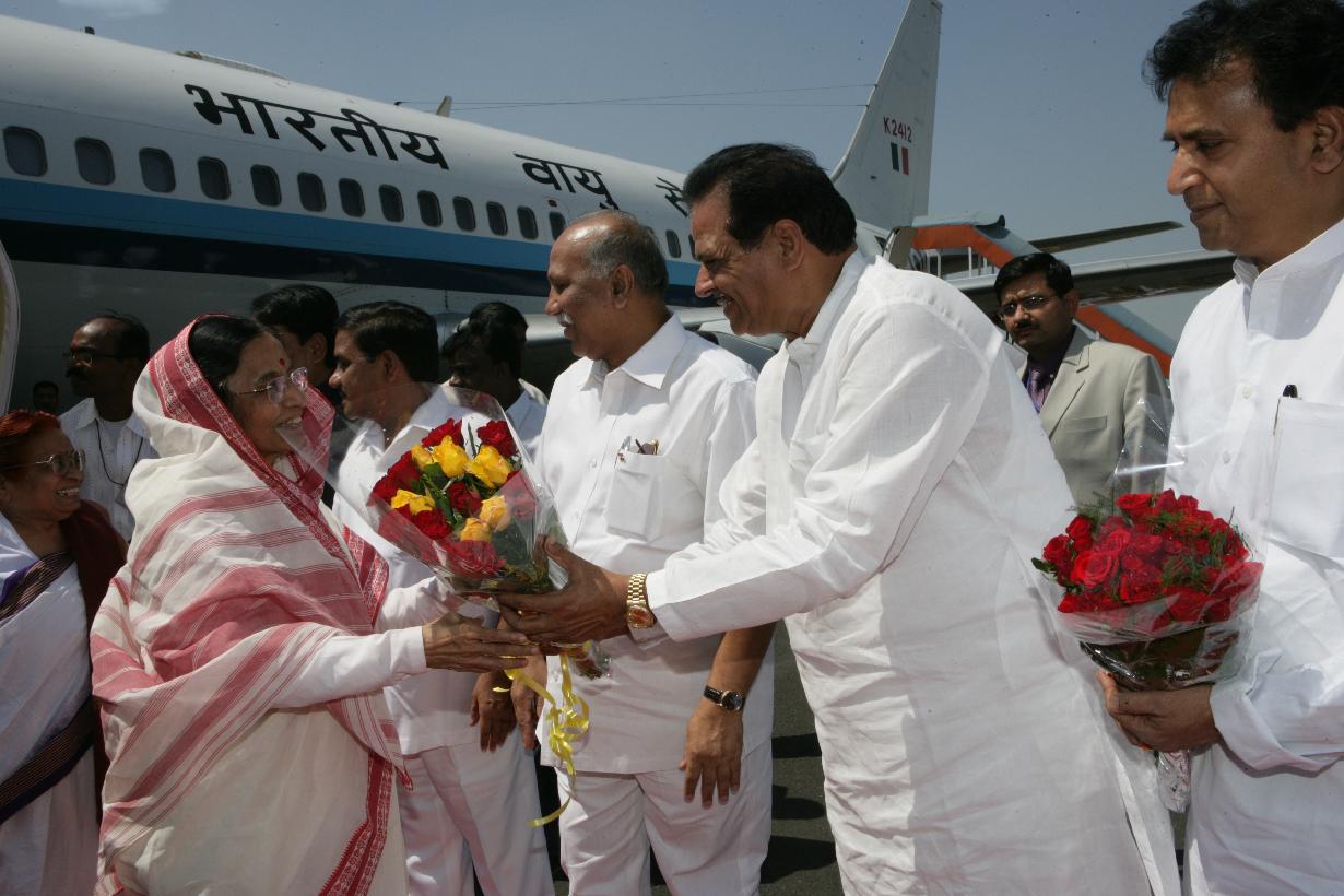The President of India, Smt Pratibha Devisingh Patil being welcomed by the Chief Minister of Maharashtra, Shri Prithviraj Chavan at Amravati Airport in Maharashtra on Oct 13, 2007
