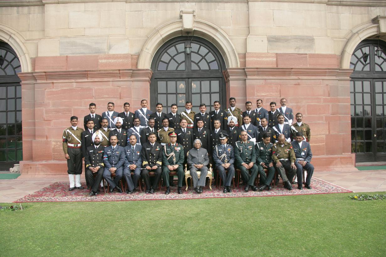 The President of India, Dr A P J Abdul Kalam posing for a Group Photograph with the Service Outriders at the East Lawn of Rashtrapati Bhavan in New Delhi on Jan 30, 2007
