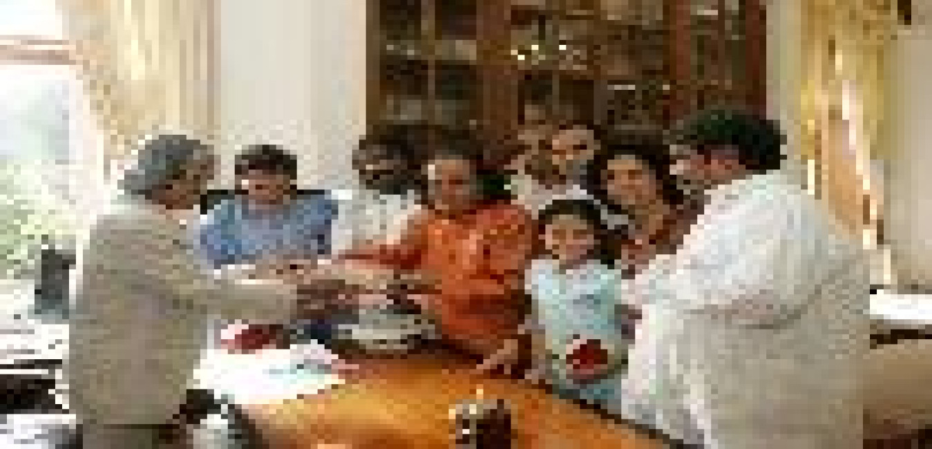 The President of India, Dr A P J Abdul Kalam with Pt Chhannulal Mishra, Classical from Varanasi alongwith Ms Gayatri Sinha and other from Devi Foundation to present CD/Cassette of "Kabir" at the Yellow Drawing Room of Rashtrapati Bhavan in New Delhi on May 25, 2006