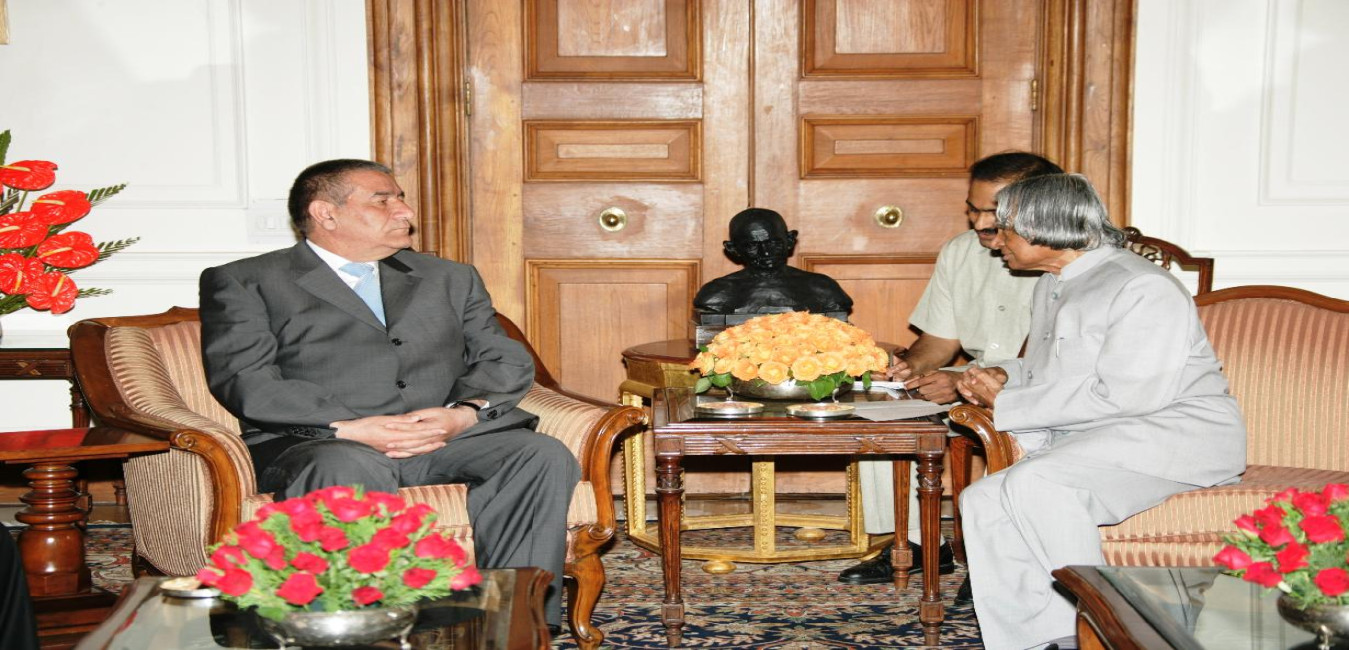 The Vice President of the Republic of Mauritius, HE Mr Abdool Raouf Bundhun calling on the President of India, Dr A P J Abdul Kalam at the Morning Room of Rashtrapati Bhavan in New Delhi on May 08, 2006