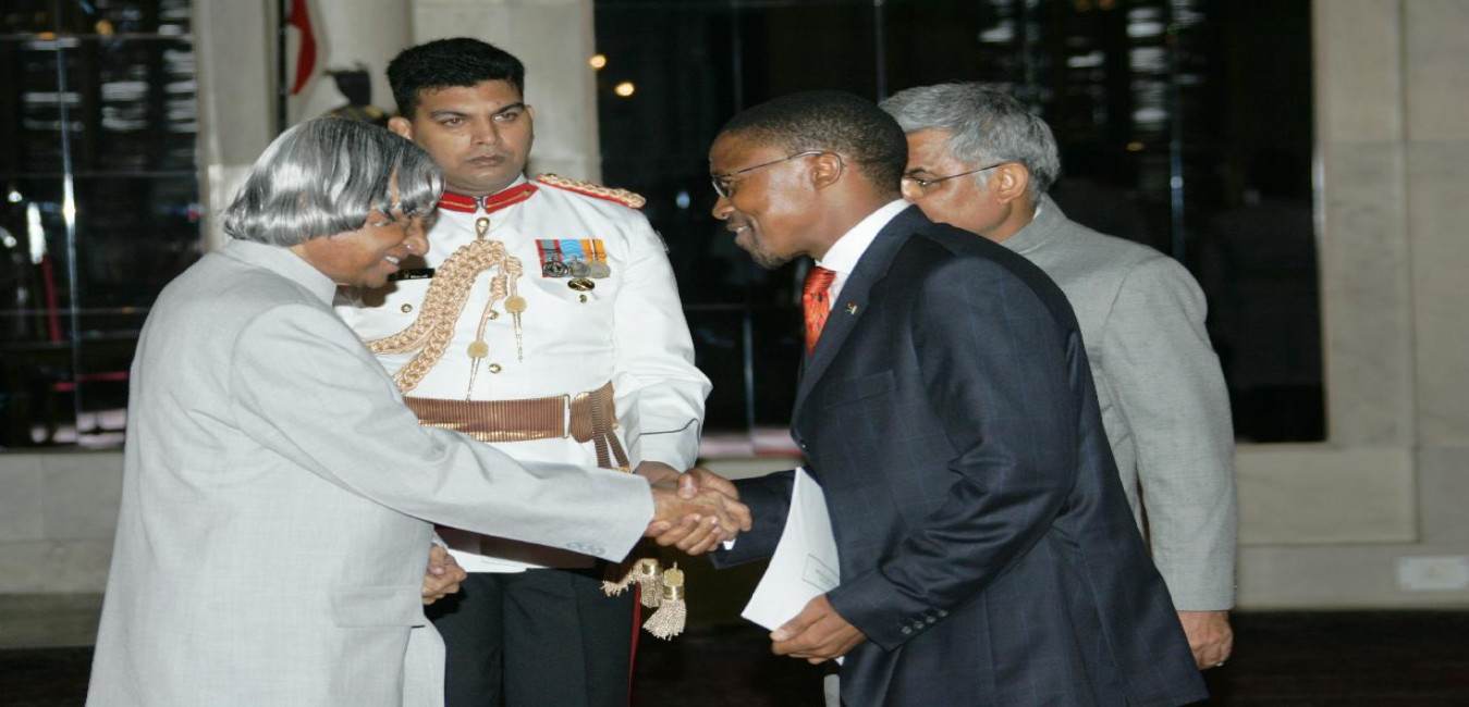 The High Commissioner-Designate of South Africa to India, HE Mr Shehloho Francis Moloi presenting his credentials to the President of India, Dr A P J Abdul Kalam at the Ashok Hall of Rashtrapati Bhavan in New Delhi on Aug 08, 2005