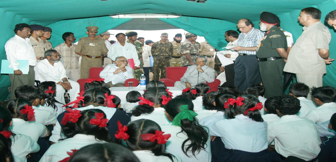 The President of India, Dr A P J Abdul Kalam visiting to the Shelters and meeting with the Children at Terressa in Andaman & Nicobar on May 07, 2005