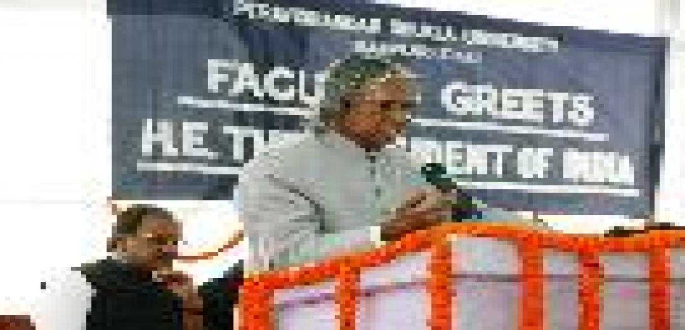 The President of India, Dr A P J Abdul Kalam interacting with the Faculty of Pt Ravishankar Shukla University during its 10th Convocation at Raipur in Chhattisgarh on Jan 28, 2004