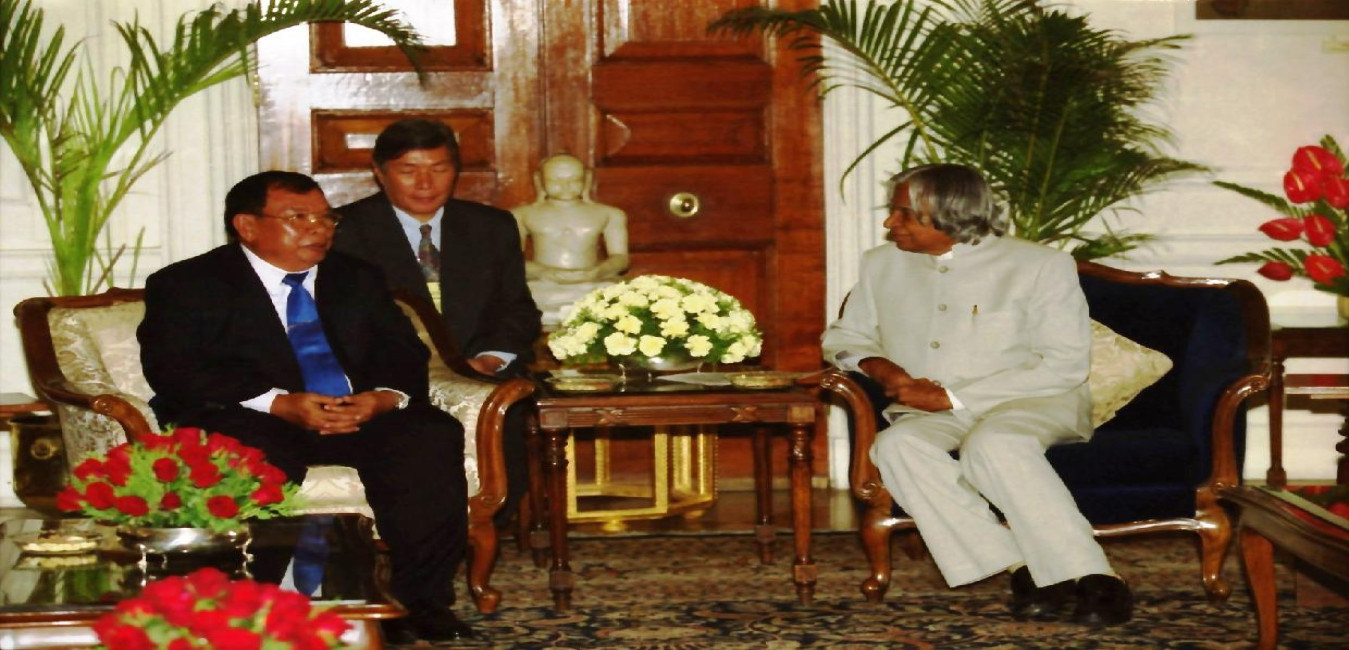 The Prime Minister of the Lao People s Democratic Republic, His Excellency Mr Bounnhang Vorachit calling on the President of India, Dr A P J Abdul Kalam at the Morning Room of Rashtrapati Bhavan in New Delhi on June 16, 2003