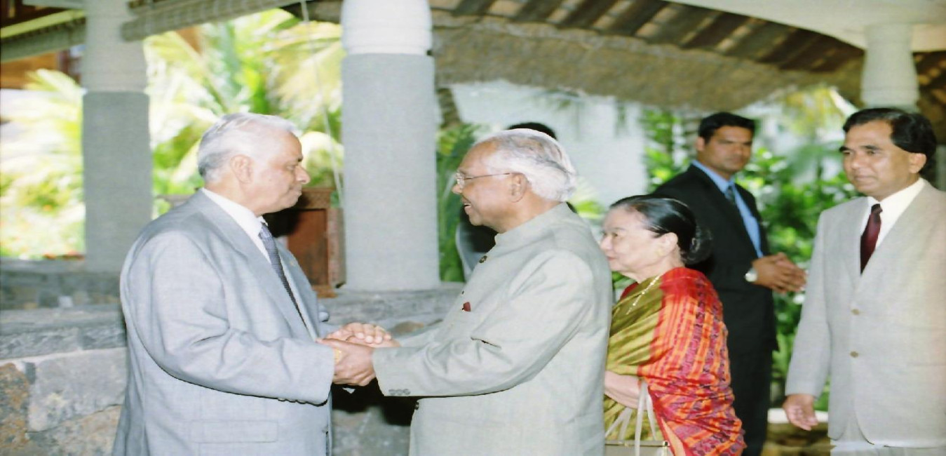The Leader of Opposition, HE Dr Navin Ramgoolamn calling on the President of India, Shri K R Narayanan at Port Louis in Mauritius on March 11, 2001