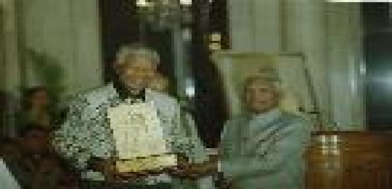 The Former President of South Africa, Dr Nelson Mandela calling on the President of India, Shri K R Narayanan at the Morning Room of Rashtrapati Bhavan in New Delhi on March 16, 2001