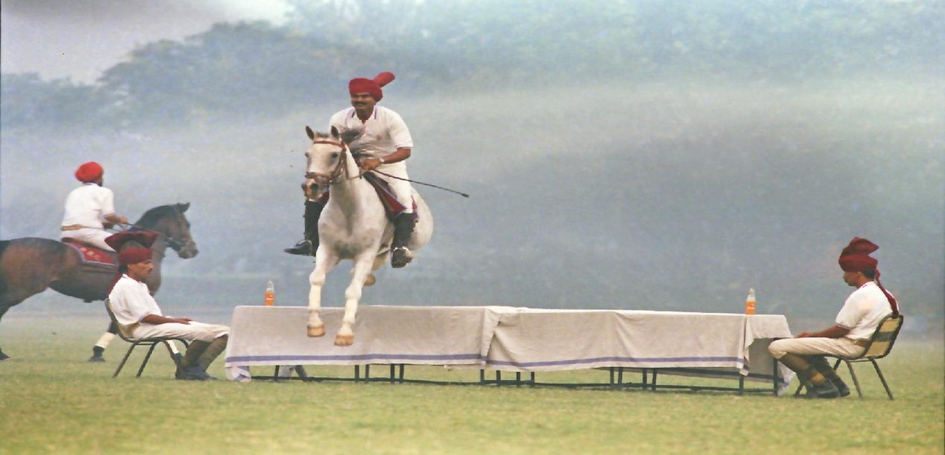 The President of India, Shri K R Narayanan witnessing the Trick Riding Display and also presenting the Prizes in Connection with the Presentation of Silver Trumpet and Trumpet Banner to the President's Bodyguard at Jaipur Polo Ground in New Delhi on Nov 19, 1998