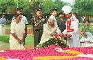 The President of India, Shri K R Narayanan paying homage at the Samadhi of Babu Jagjivan Ram on his 12th Death Anniversary at Samta Sthal in New Delhi on July 06, 1998