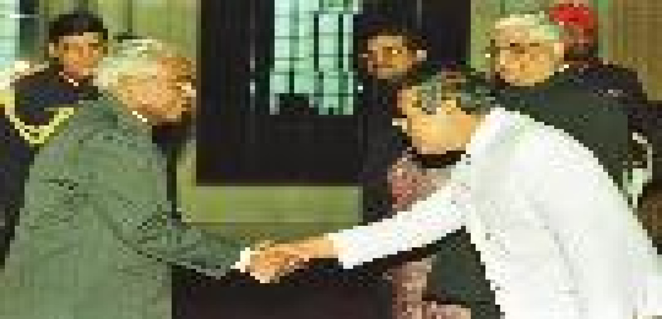 The President of India, Shri K R Narayanan laying a wreath at Amar Jawan Jyoti on Vijay Diwas at India Gate in New Delhi on Dec 16, 1997