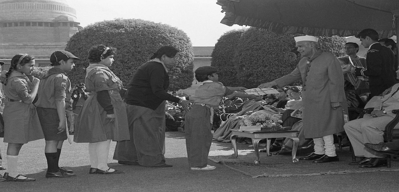 The President of India, Dr. Shankar Dayal Sharma attending the 35th Annual Cub/Bulbul Rally organised by the Delhi State Bharat Scouts & Guides at Rashtrapati Bhavan in New Delhi on February 08, 1997.