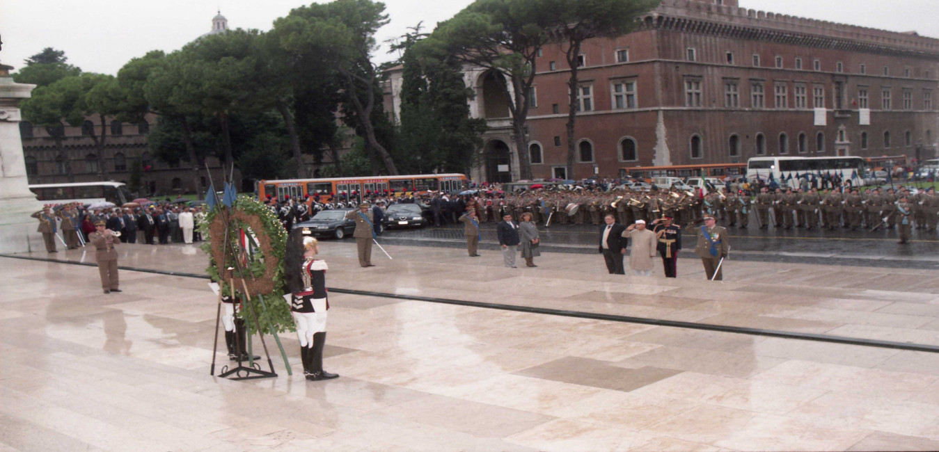 The President of India, Dr. Shankar Dayal Sharma laying wreath at the National Monument, at Rome, in Italy on October 15, 1996.