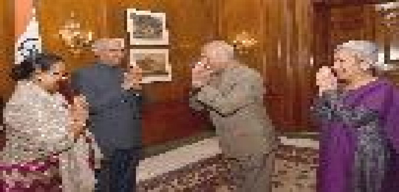 Wing Commander Rakesh Sharma (Retd.), First Indian Astronaut along with his wife meeting with the President of India, Shri Ram Nath Kovind and the First Lady, Smt. Savita Kovind, at Rashtrapati Bhavan on March 06, 2019.