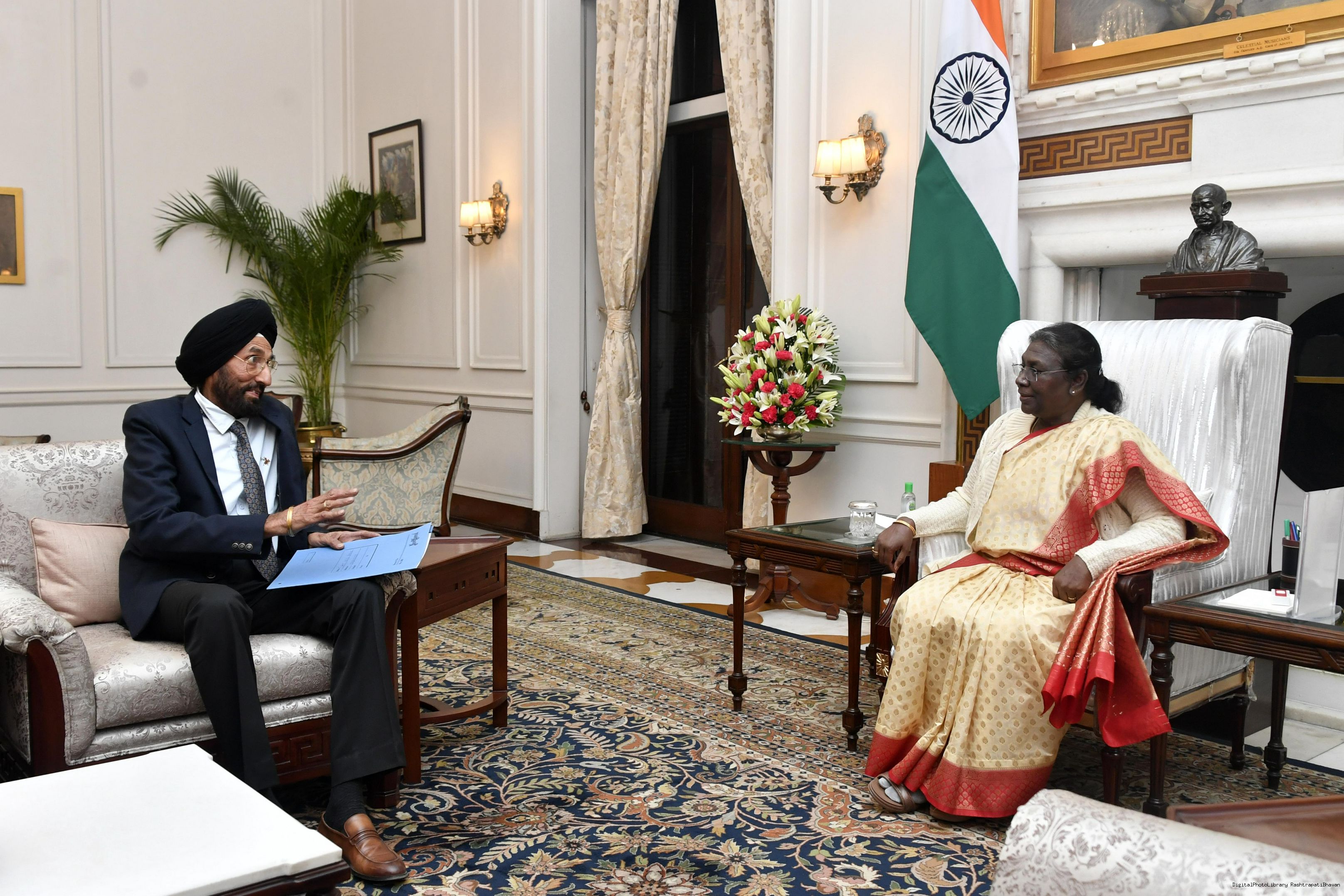 Wg Cdr (Retd.) Malkit Singh Bains meeting with the President of India, Smt. Droupadi Murmu, at Rashtrapati Bhavan on Nov 28, 2022.