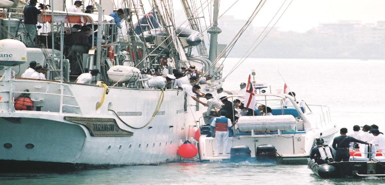 The President of India, Dr A P J Abdul Kalam embarking to INS Tarangini at Kochi in Kerala on April 25, 2004