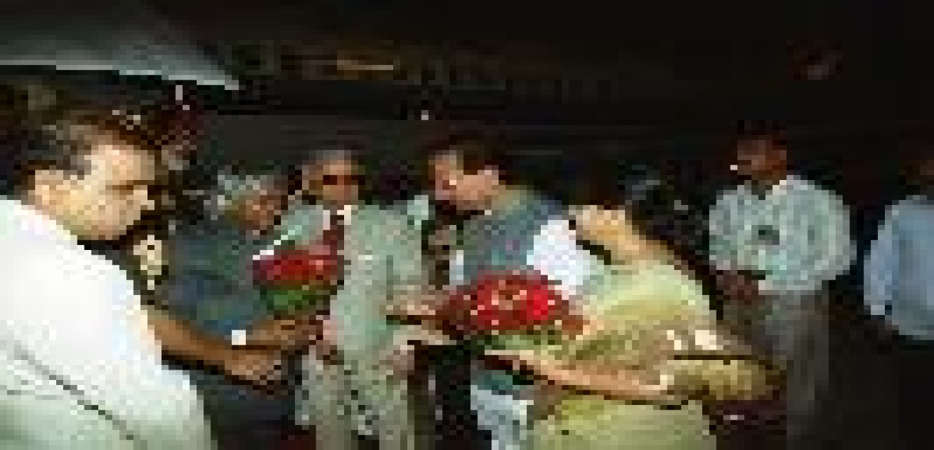 The President of India, Dr A P J Abdul Kalam being welcomed by the Governor of Orissa, Shri M M Rajendran at Bhubaneshwar Airport in Orissa on May 14, 2003