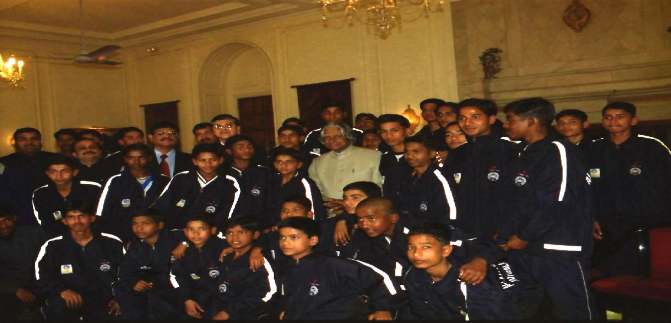 The President of India, Dr A P J Abdul Kalam meeting with the Children and Officials of Allahabad Sporting Club at the Yellow Drawing Room of Rashtrapati Bhavan in New Delhi on Feb 18, 2003