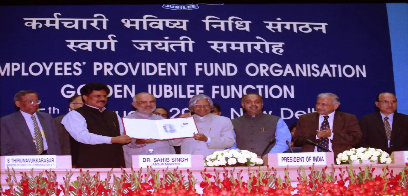 The President of India, Dr A P J Abdul Kalam participating in the Golden Jubilee Celebrations of the Employees Provident Fund Organisation at Vigyan Bhavan in New Delhi on Feb 25, 2003