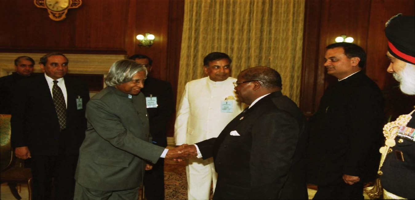 The President of the United Republic of Tanzania, HE Mr Benjamia William Mkapa and his wife Mrs Anna Benjamin Mkapa calling on the President of India, Dr A P J Abdul Kalam at the North Drawing Room of Rashtrapati Bhavan in New Delhi on Dec 16, 2002