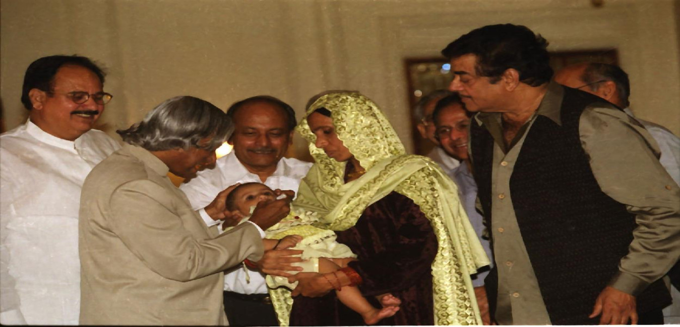 The President of India, Dr A P J Abdul Kalam inaugurating the Sub National Immunisation Day by administering Polio Vaccine to the Children at the Yellow Drawing Room of Rashtrapati Bhavan in New Delhi on Sep 28, 2002