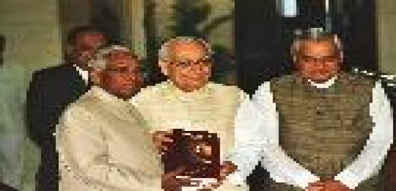 The President of India, Shri K R Narayanan receiving a Copy of the Book "Students Britannica India" at the Committee Room of Rashtrapati Bhavan in New Delhi on July 28, 2000