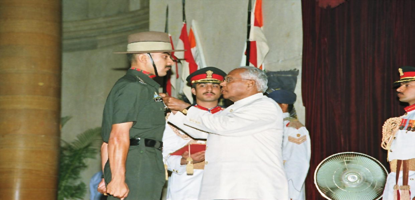 The President of India, Shri K R Narayanan presenting the Defence Investiture Ceremony-I Awards at the Darbar Hall of Rashtrapati Bhavan in New Delhi on April 06, 2000