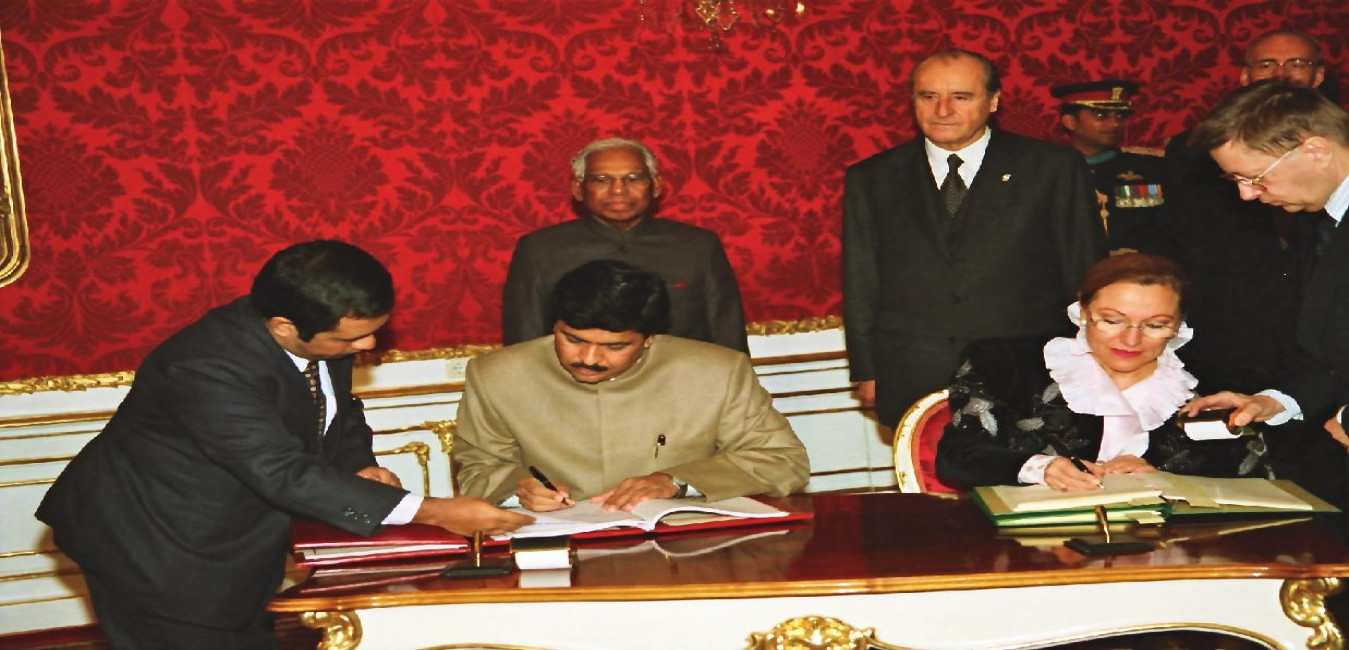 The President of India, Shri K R Narayanan witnessing of the signing of Agreement on Bilateral Investment Protection between India and Austria at Vienna in Austria on Nov 08, 1999