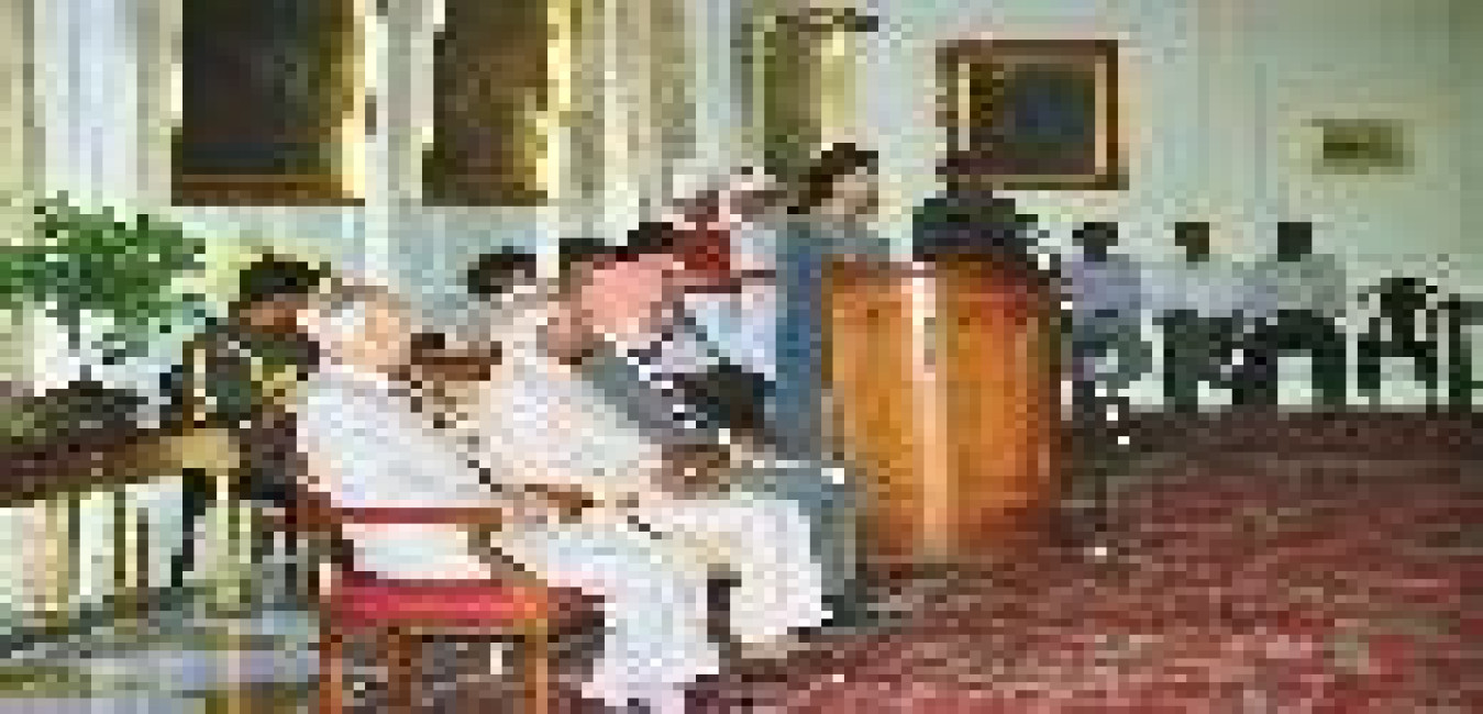 The President of India, Shri K R Narayanan receiving a "PANKHA" of Phool Walon Ki Sair organised by Anjuman Sair e Gul Faroshan at the Yellow Drawing Room of Rashtrapati Bhavan in New Delhi on Oct 05, 1999
