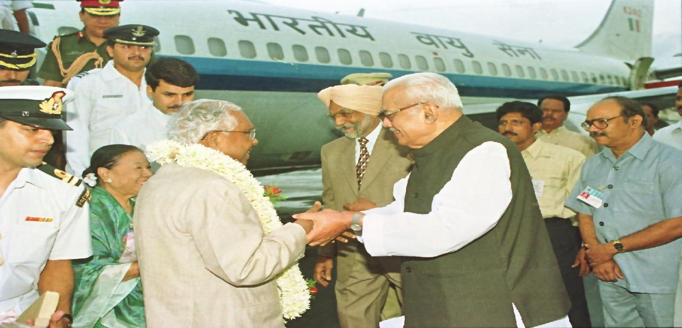 The President of India, Shri K R Narayanan being welcomed by the Governor of Andhra Pradesh, Shri C Rangarajan and the Chief Minister of Andhra Pradesh, Shri N Chandrababu Naidu at Hyderabad Airport in Andhra Pradesh on June 12, 1999
