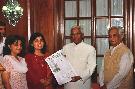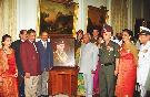 The President of India, Shri K R Narayanan with Smt and Shri J C Kapur, Smt Chanda Singh and Shri J Veerataghavan to Present a Copy of the New Edition of "Indian Travel Diary of a Philosopher" by Count Hermann A Keyserling brought out by Bharatiya Vidya Bhavan and Surya Foundation at Rashtrapati Bhavan in New Delhi on June 03, 1999