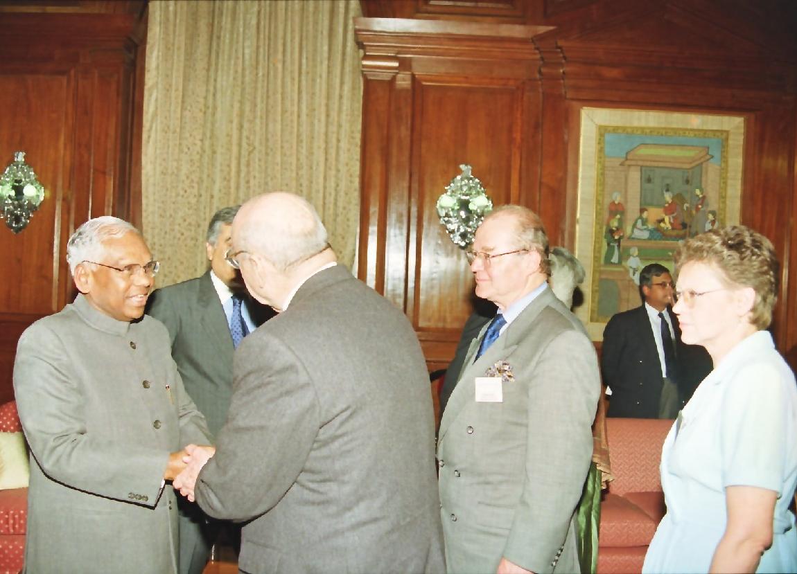 The President of India, Shri K R Narayanan being greeted to the Vice President of India, Shri Krishan Kant on his Birthday at 6, Maulana Azad Road in New Delhi on Feb 28, 1999