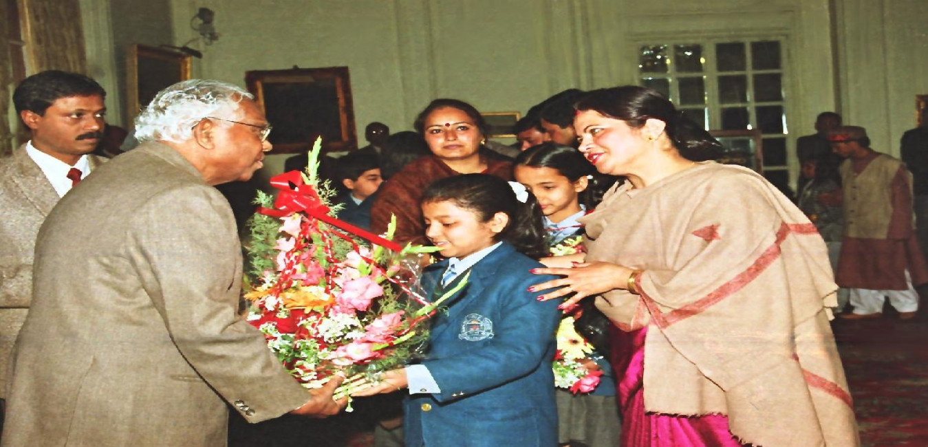 The President of India, Shri K R Narayanan meeting with the National Bravery Award Winning Children and Officials of Indian Council of Child welfare at the Yellow Drawing Room of Rashtrapati Bhavan in New Delhi on Jan 21, 1999