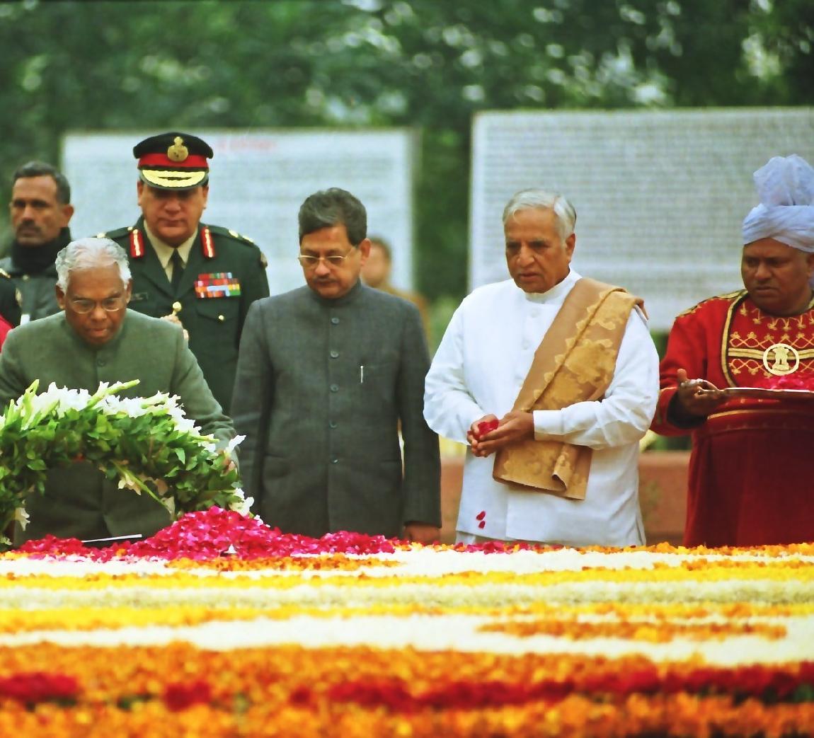 The President of India, Shri K R Narayanan paying homage at the Samadhi of the Former Prime Minister of India, Late Shri Lal Bahadur Shastri on the Occasion of his Death Anniversary at Vijay Ghat in New Delhi on Jan 11, 1999