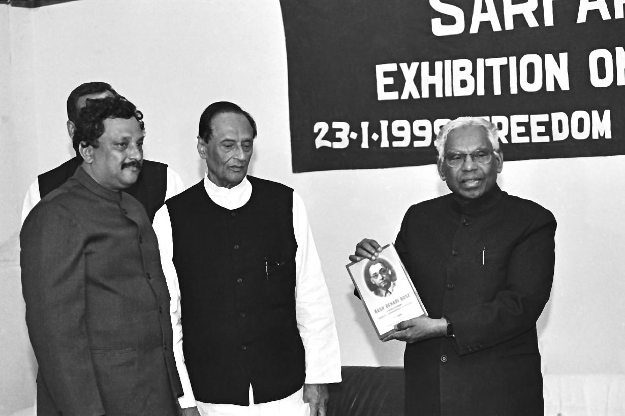 The President of India, Shri K R Narayanan seeing the Rare Portraits of Martyrs of the Freedom Movement at Secular House, 1, Aruna Asaf Ali Marg in New Delhi on Jan 23, 1999
