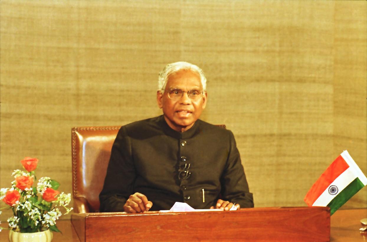 The President of India, Shri K R Narayanan addressing to the Nation through Message Recording on the eve of Republic Day t the Morning Room of Rashtrapati Bhavan in New Delhi on Jan 23, 1999