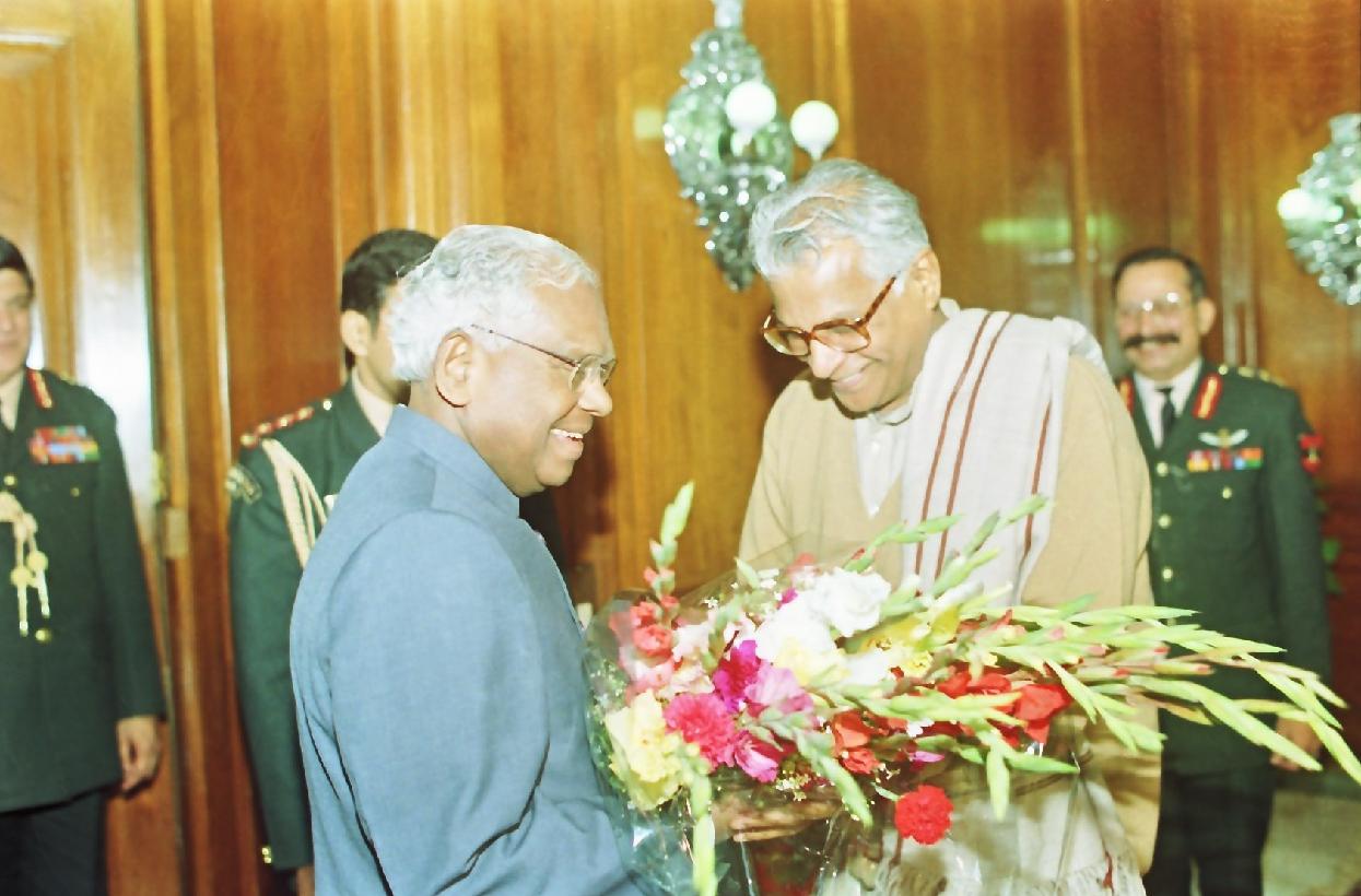 The President of India, Shri K R Narayanan at the Swearing-in-Ceremony of the Cabinet Ministers at Rashtrapati Bhavan in New Delhi on Dec 05, 1998