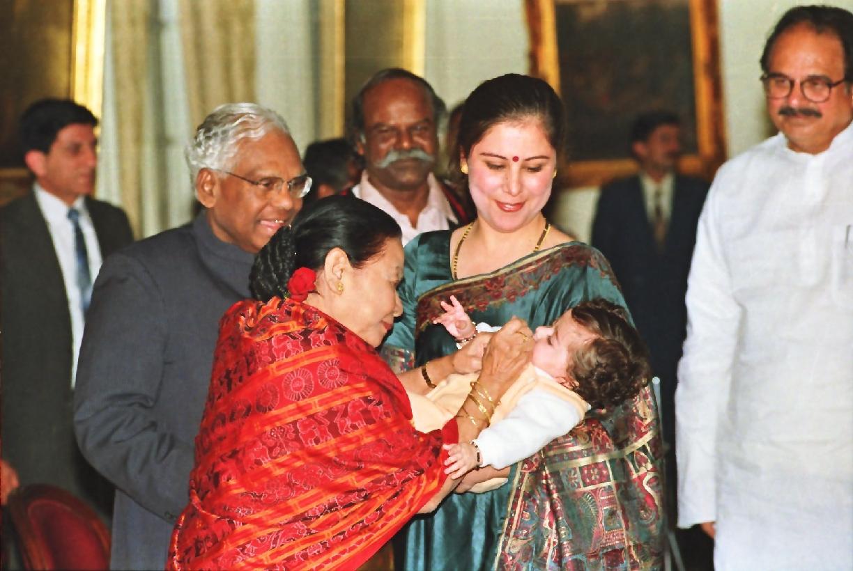 The President of India, Shri K R Narayanan inaugurating the Pulse Polio Campaign by administering the Oral Polio Drops to Children at the Yellow Drawing Room of Rashtrapati Bhavan in New Delhi on Dec 05, 1998