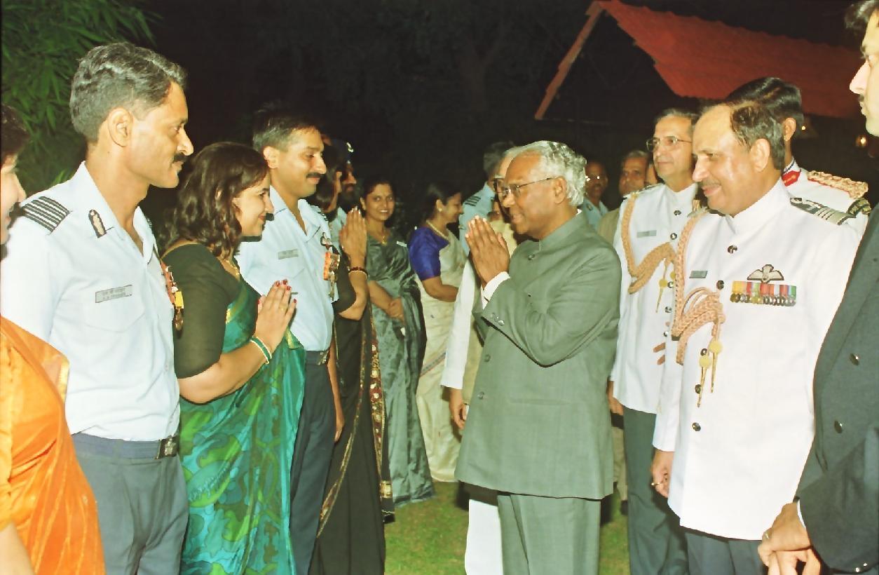 The President of India, Shri K R Narayanan during "At Home" on the eve of 66th Anniversary of Indian Air Force at Air House, 23, Akbar Road in New Delhi on Oct 08, 1998