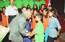 The President of India, Shri K R Narayanan being Gifted to War Windows Children and Cutting Cake at Srinagar in Jammu and Kashmir on Oct 09, 1998