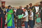 The President of India, Shri K R Narayanan presenting the colors to Jak Regiment at Srinagar in Jammu and Kashmir on Oct 09, 1998