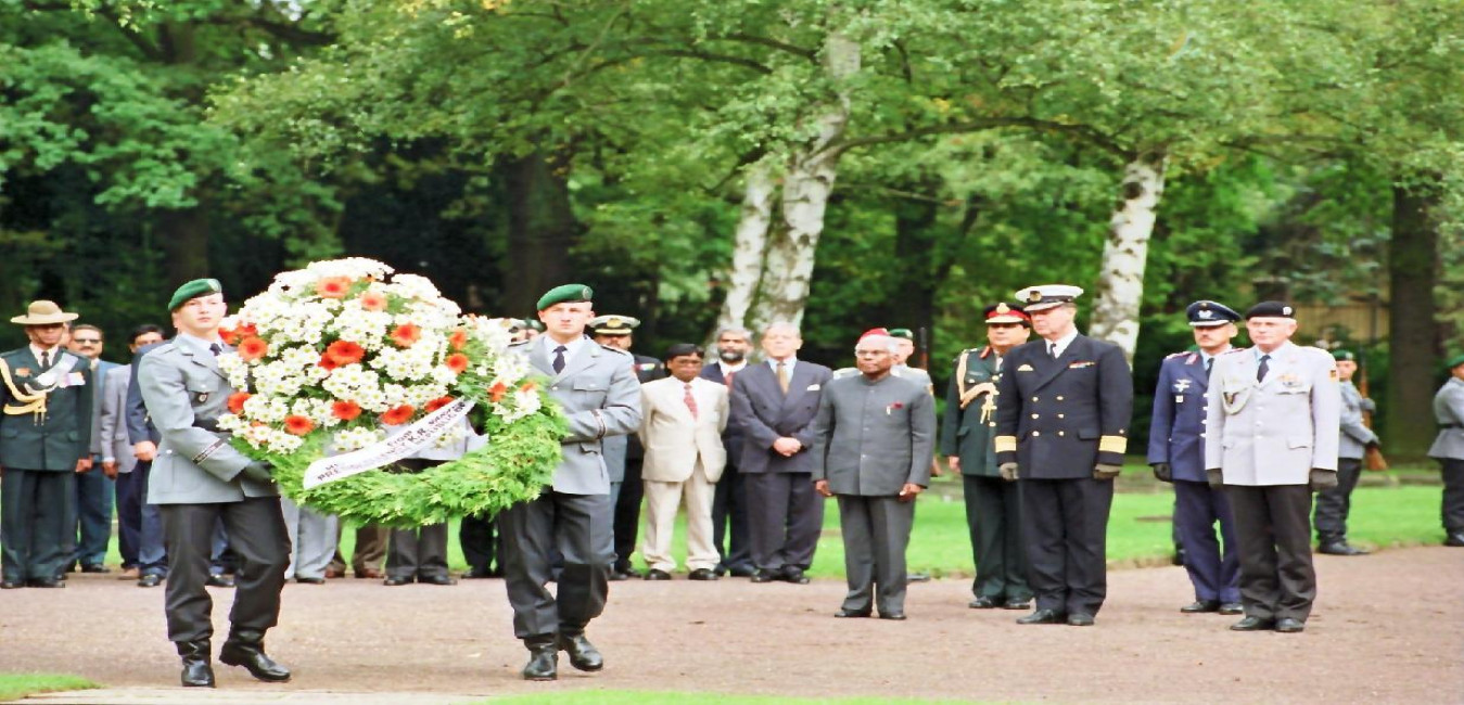 The President of India, Shri K R Narayanan laying of wreath at Bonn in Germany on Sep 09, 1998