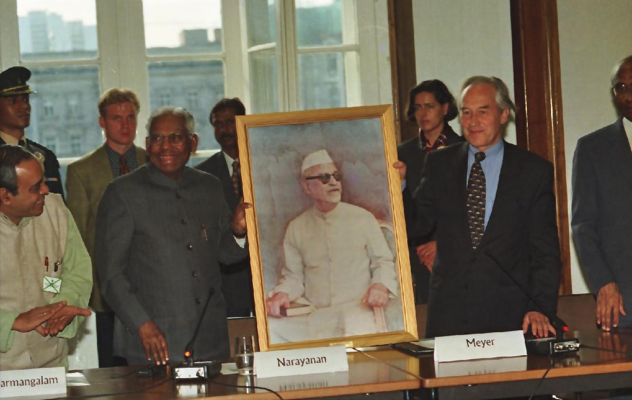 The President of India, Shri K R Narayanan meeting with the Academics and Intellectuals from Indian Side at Berlin in Germany on Sep 10, 1998