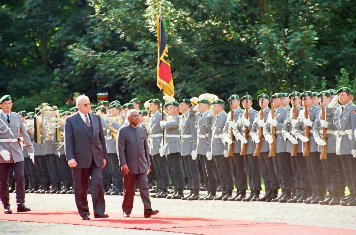 The President of India, Shri K R Narayanan before departure from Bonn Military Airport in Germany on Sep 09, 1998