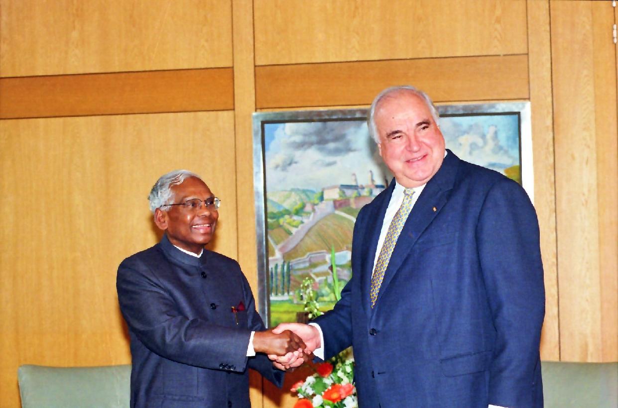 The President of India, Shri K R Narayanan meeting with Federal Chancellor of Germany, HE Mr Helmut Kohl at Bonn in Germany on Sep 08, 1998
