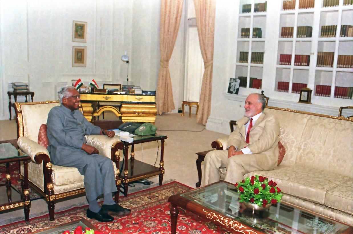 The President of India, Shri K R Narayanan being interviewed by Shri N Ram at the Rashtrapati Bhavan in New Delhi on Aug 05, 1998