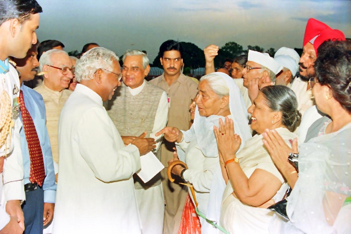 The President of India, Shri K R Narayanan during "At Home" to Freedom Fighters at the Central Lawn of Rashtrapati Bhavan in New Delhi on Aug 09, 1998