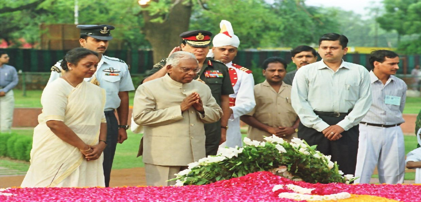 The President of India, Shri K R Narayanan paying homage at the Samadhi of Babu Jagjivan Ram on his 12th Death Anniversary at Samta Sthal in New Delhi on July 06, 1998