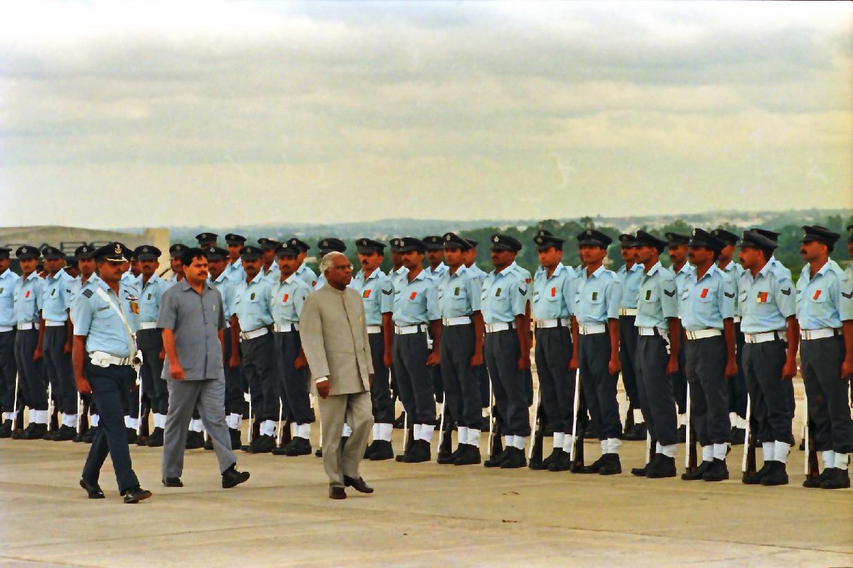 The President of India, Shri K R Narayanan inspecting Guard of Honour at Bangalore Airport in Karnataka on July 27, 1998