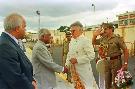 The President of India, Shri K R Narayanan being welcomed by the Governor of Karnataka, Shri Khurshed Alam Khan and the Chief Minister of Karnataka, Shri J H Patel at Bangalore Airport in Karnataka on July 27, 1998