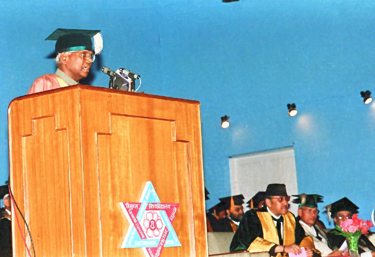 The President of India, Shri K R Narayanan being presented the Honorary Degree of the Doctor of Letters by the King of Nepal, HM Birendra Bir Bikram Shah Dev at Tribhuvan University Kirtipur in Nepal on May 30, 1998